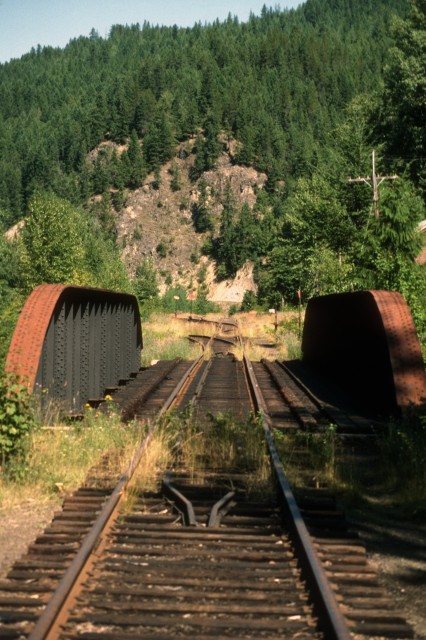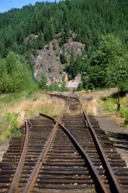A small yard could be found on the flats and were perhaps three tracks deep. Heading south, the line crossed over Wilson Creek and shorty after that ended, although the abandoned roadbed to New Denver and Sandon continued on.