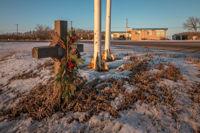 5) Under the Pallas sign, a memorial to Darcy who perished a few years back here along the Trans Canada Highway, a dangerous road at the best of times. In back, the motel is a set away from the busy thoroughfare and almost hidden from view.