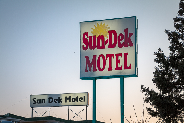 10-12) The Sun Dek Motel dates back to the early 1960s. We’re obsessed with zig-zag roofs (rooves?) and by the way will be producing a piece on them down the road. In the 1980s their ads make mention of waterbeds being available in some rooms. Waterbeds? Really? The vibrating ones we’re better! We believe the Sun Dek sign is of a more modern vintage than the buildings themselves. BIGDoer-mobile photobomb!