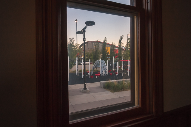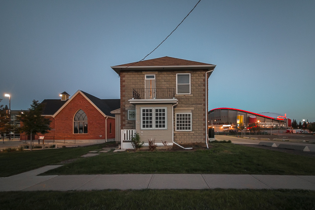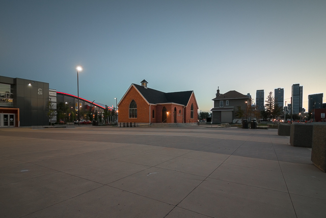 The campus sits on the far southeast corner of the community present day and super convenient to the Stampede grounds. The Saddledome features prominent as a backdrop in our photos and nicely lit up. Talk about a great evening to get in a little photography and exploring.