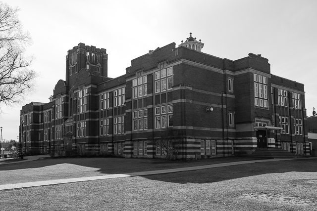 A gymnasium was added in the early 1970s, but otherwise, the building retains its as built appearance. A large sports field surrounds the building, as so many mature trees. They’ve been around a long time and thought the school has many stories to tell, they could add a tale or two themselves.