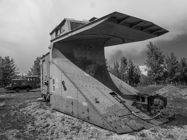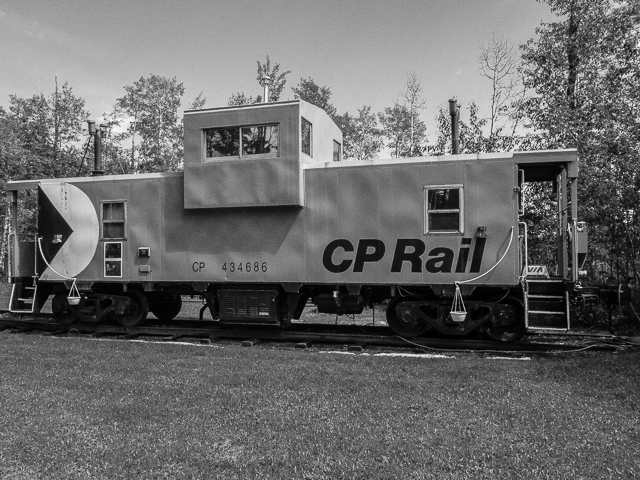 A snow plow (ex-CNR 1930s) sits on a small length of track nearby. Elsewhere on the property there’s a box car (ex-CPR 1960s), ore car (ex-CPR 1950s) in one location, plus a caboose (ex-CPR 1970s) and a maintenance of way speeder in another. There’s also railway memorabilia on display too.