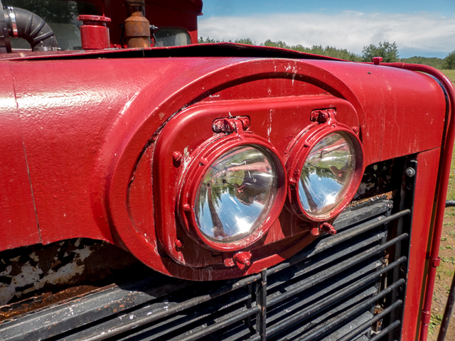P&H had the locomotive rebuilt shortly before they disposed of it. Sadly, it suffered an engine fire not long after arriving at the ranch and this complicated matters. The compressor, generator and starter all received damage. Painted in a bright red, a P&H ghost logo is still visible on back of the cab.