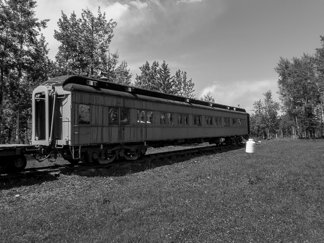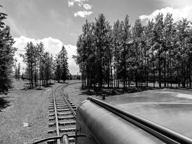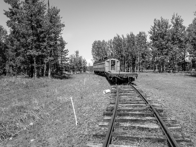 There’s an interesting mix of rail cars at Aspen Ranch, but we’ll only touch on them briefly here. A couple are near the locomotive and include a 1920s passenger car (ex-CNR) and 1950s era flat car (ex-CPR). These two are on that loop mentioned earlier and maybe one day for fun, they can hook them up to the locomotive and go round and round and round…and round…and… It’s just a circle.