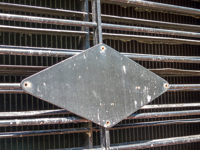 The diamond-shaped builder’s plate located on the radiator grill went missing at some point. In old photos found during research, it’s clearly seen in many shots, even ones as late as the 2000s.