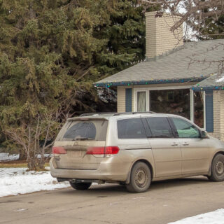 In a way, it’s as though time has stood still here. The house seen in back, in the old photo, still stands and is shown below. It’s seven years older than its round neighbour and typical of larger homes built in the community as it matured. It’s a bland shoebox with a hip-roof and near identical to BIGDoer HQ in form. This style was popular at the time and economical to build. There’s hundreds in our neighbourhood.